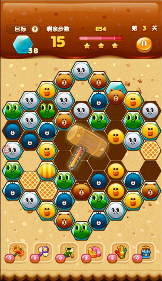 这款游戏的六个必玩理由可要记好啦:首先是人见人爱的LINE正版角色,戳戳布朗熊的肚皮它会对你wink呢;其次是首创的六维消除,蜂窝状的棋盘让宝贝能斜着滑出XY形连锁消除;500+关卡藏着不同惊喜,有时要收集水果,有时得炸开巧克力,每天玩都不重样;特效道具也超有趣,空气锤咚地砸开一片,魔法棒biu地变出彩虹球;每周还有新鲜活动,比如节日限定关卡会变成南瓜灯或圣诞袜图案;最后别忘了社交功能,和闺蜜比拼分数还能互扔小心心~
