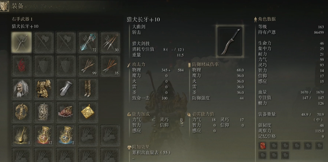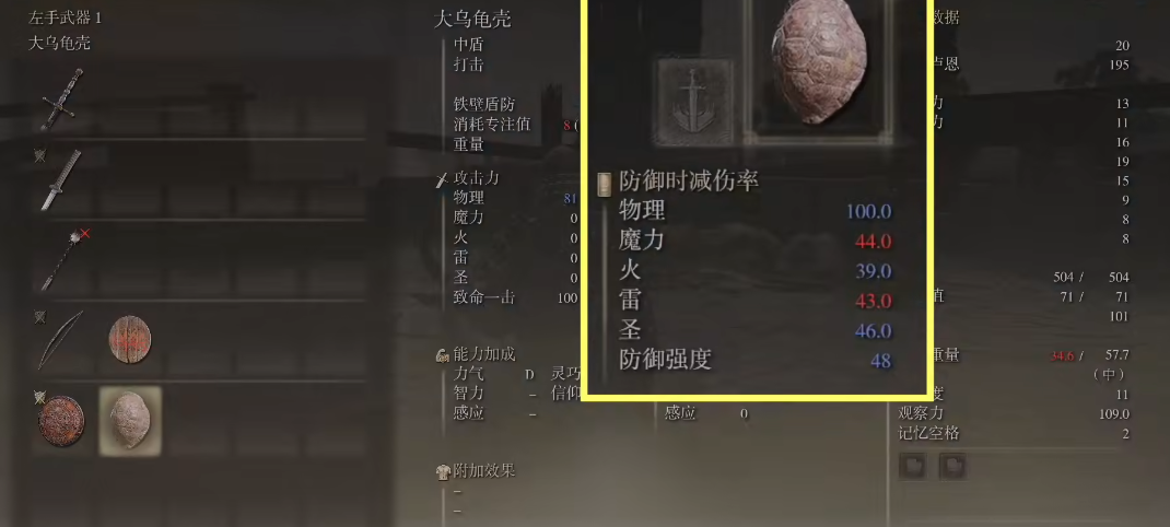 武士开局自带打刀和长弓,是敏捷流派的优秀选择。这把打刀自带出血效果,对付人型敌人特别有效,初期就能打出不错的伤害。长弓在远程拉怪和打破敌人防御时非常实用,记得多用蓄力战技。初始的芦苇之地套装颜值在线,虽然防御一般,但配合高机动性足够应付前期战斗。别忘了捡啜泣半岛的乌龟盾,100%物理减伤能大幅提升生存能力。