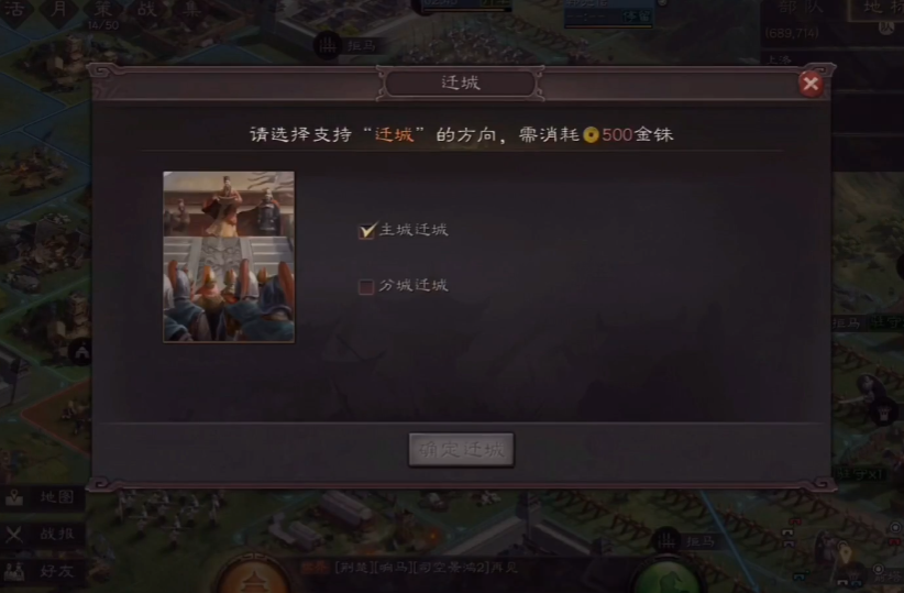 在三国志战略版里迁主城,首先得满足几个关键条件。名声值必须达到5000点,这是最基础的门槛,平时多完成任务和占领土地就能慢慢积累。迁城需要消耗500金铢,不算太贵,但记得提前攒够。你的部队必须全部处于待命状态,不能有队伍在外面打仗或者行军,城内也不能有正在升级的建筑,否则系统会直接拒绝你的迁城申请。迁城有72小时的冷却时间,如果之前刚迁过,就得耐心等等了。
