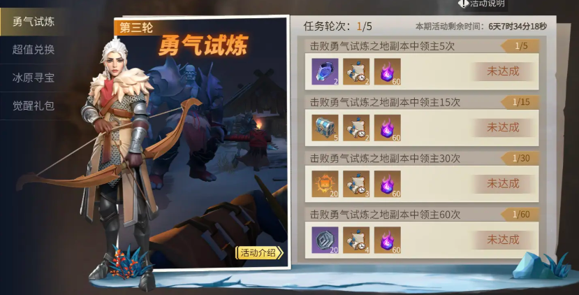勇气试炼是咱们在冰原世界里必须挑战的重要活动,想要顺利通关可得掌握一些小技巧。这个活动主要分为副本挑战和日常任务两部分,通过击败怪物和完成任务能获得试炼之魂,用来兑换各种珍贵奖励。每次进入试炼之地副本都会遇到五轮强力怪物,每轮需要击败80个首领,虽然有点难度,但只要合理搭配装备和技能,慢慢磨也能过关。日常任务相对简单些,比如击败30个任意敌人或者采集材料,每天坚持做完就能稳定拿到不少试炼之魂。