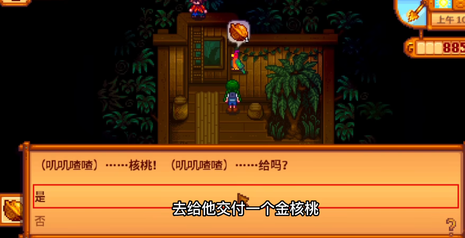 南岛的完全解锁需要修复海滩度假村,这需要消耗20个金核桃。金核桃可以通过多种方式获取,包括完成宝石鸟谜题、挖掘隐藏区域、击败火山地牢中的敌人等。修复度假村后,在非雨天的偶数日晚上8点后,海盗会出现在海盗湾,玩家可以参与飞镖小游戏获取额外金核桃。下雨天时南岛岩石上会出现美人鱼,按照特定顺序点击长笛块可以解锁隐藏奖励。