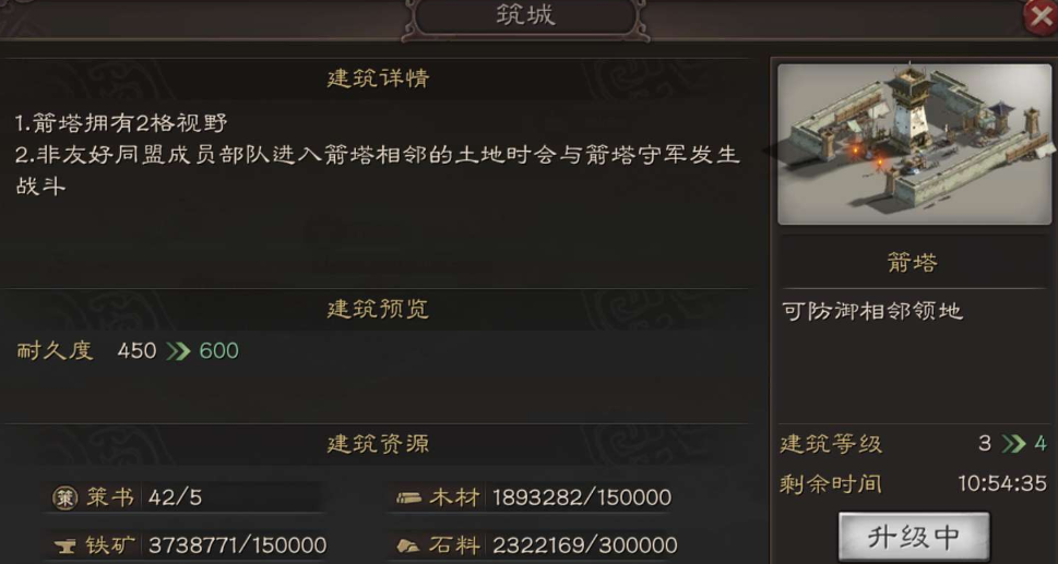 防守方需重点关注敌方拆迁部队的动向,利用城防建筑和高级战法拖延时间。箭塔需达到5级以上才具备有效输出能力,建议按照营帐在前、拒马居中、箭塔在后的顺序布置防御工事。这种布局能迫使敌方花费时间铺路,无法直接行军拆迁。5级箭塔建造需要15至20小时,而5级拒马仅需10小时,合理规划建造顺序能最大化防御效率。