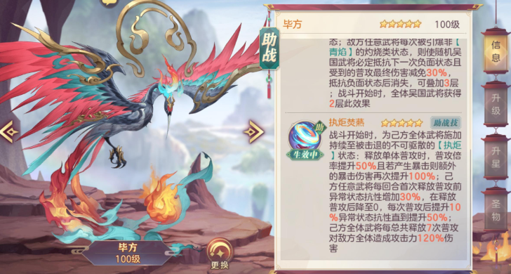 毕方是火攻队的主战灵宠,能大幅提升灼烧伤害的爆发;穷奇的助战效果可减少敌方控制技能的干扰,烛龙则提供护盾或回复能力。战魂方面,陆逊推荐携带战意勃发或连携增强生存和命中,孙策适合破釜沉舟强化收割能力。注意优先培养陆逊和孙策的练度,周瑜和贾诩的资源可以适当放缓。
