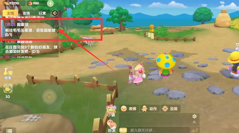 获得摩尔庄园中的超能球道具,首先需要完成特定任务并前往毛毛头部落。在游戏内接取超能球任务后,系统会自动引导玩家前往任务地点。到达毛毛头部落后,需寻找一根石柱并进行交互,随后会出现火精灵NPC,与其对话即可获得超能球。这一道具主要用于对抗红龙Boss,投掷后有概率获得晶石奖励。