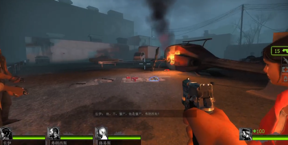 火场区域是下楼路线的最后障碍,地面遍布火焰但存在安全路径。从电梯出来后立即拾取地面的长枪武器,向右侧移动并观察火焰分布。部分看似燃烧的区域实为着火的感染者,其火焰不会对玩家造成伤害。保持冷静沿非燃烧路径前进,穿过大厅后即可到达安全门完成下楼流程。此阶段需优先击杀冲锋的感染者,避免被包围。