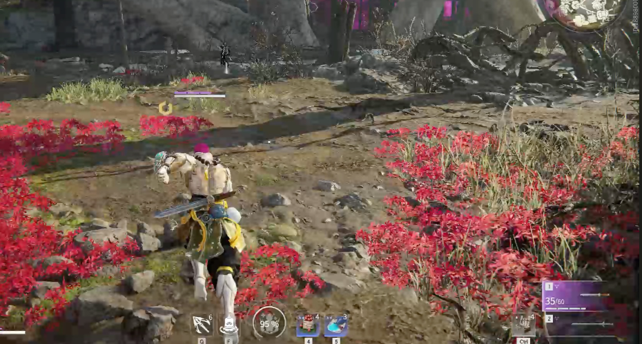 赶路要注意精力管理,天赋选择上可以优先减少闪避精力消耗或增加精力上限。快到精力耗尽时,提前打出鬼返断蓝霸体,接着长按右键蓄力,利用蓄力时间自然恢复精力,再继续闪步循环。攀爬时还能用壁击加速,点按攻击键朝视角方向飞出,适合翻越障碍或快速上下悬崖,但要注意调整视角控制方向。