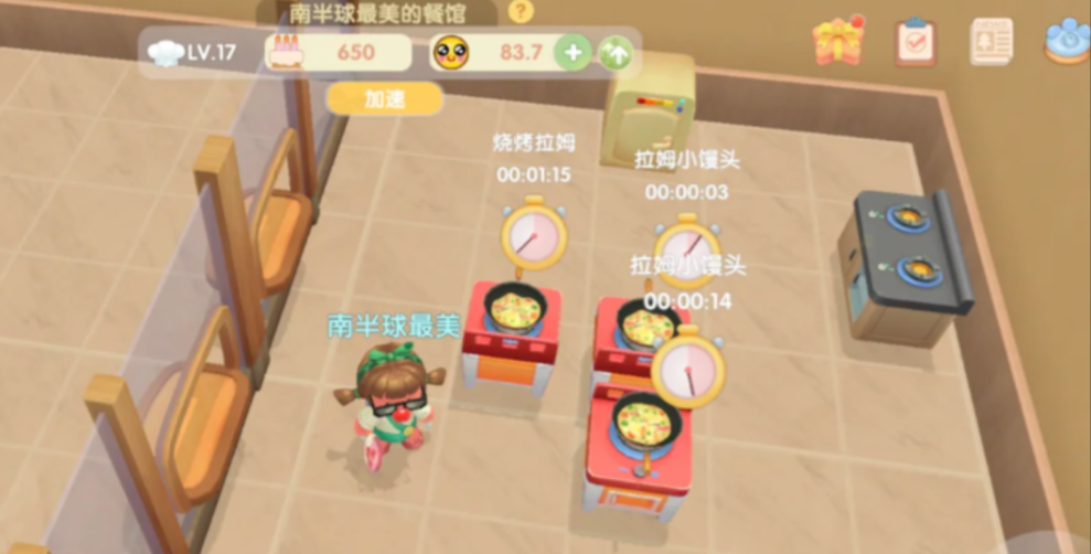 餐厅每天营业时间为2小时,在开业前需要充分准备食材并研究菜谱。营业期间最好全程在线,离开会导致收入大幅下降。菜品制作完成后需及时端到出菜口,否则食物冷却会影响产量。雇佣好友的拉姆作为店员可以提升经营效率,最多可雇佣4只拉姆,雇佣名额随厨师等级解锁。餐厅豪华度会影响小费箱的收益,适当升级餐厅硬件设施有助于提高利润。