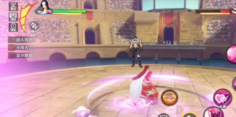 PVE玩法中,女帝凭借石化与聚怪能力表现突出。面对无护盾敌人时,建议以2技能起手远程消耗,接追加2技能位移近身,再以1技能突进并触发分支攻击。对抗霸体或护盾目标时,需利用激斗技九蛇的霸王色打断攻击,并依赖萨洛梅的协同输出快速破盾。徽章系统进一步强化其团队增益,1号徽章使踢击附带聚怪与石化,4号徽章提升攻速与暴击率,搭配新世界路飞可激活25%攻击力加成。