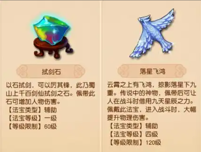 对于追求极致输出的玩法,拭剑石和落星飞鸿这类攻击型法宝值得考虑。试剑石能为主秒目标增加稳定伤害,副秒目标也有小幅提升;落星飞鸿的加成更为明显,主副秒都能获得可观伤害增幅。不过要注意这类法宝会消耗灵气,需要定期补充。