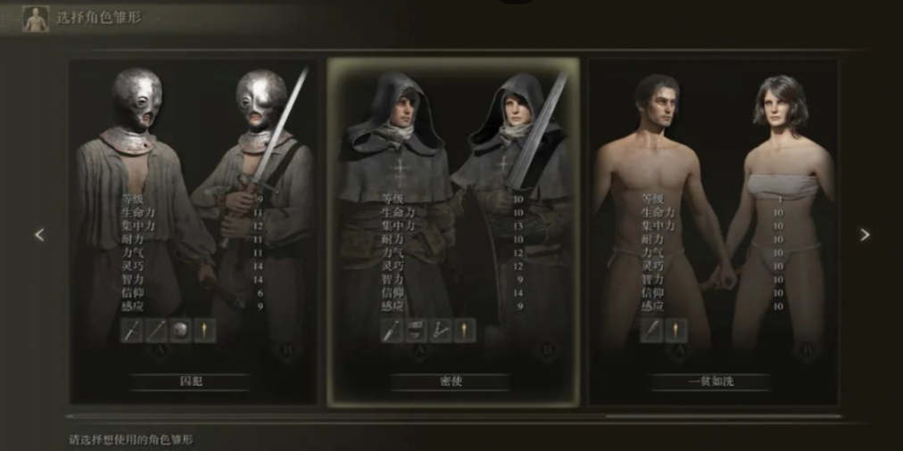 游戏的职业系统提供了高度自由的成长路径,流浪骑士、剑士、密使等初始职业仅决定开局风格,后期通过属性加点和装备搭配可以发展出截然不同的流派。力量型巨剑猛男、敏捷流双刀刺客或是信仰系祷言法师,每种build都能通过合理配装形成独特战斗体验。加点策略直接影响游戏难度,例如前期优先提升生命值能显著提高容错率,而专注特定攻击属性则能快速形成战斗力。这种多元化的角色培养方式让每次新周目都能产生新鲜感。