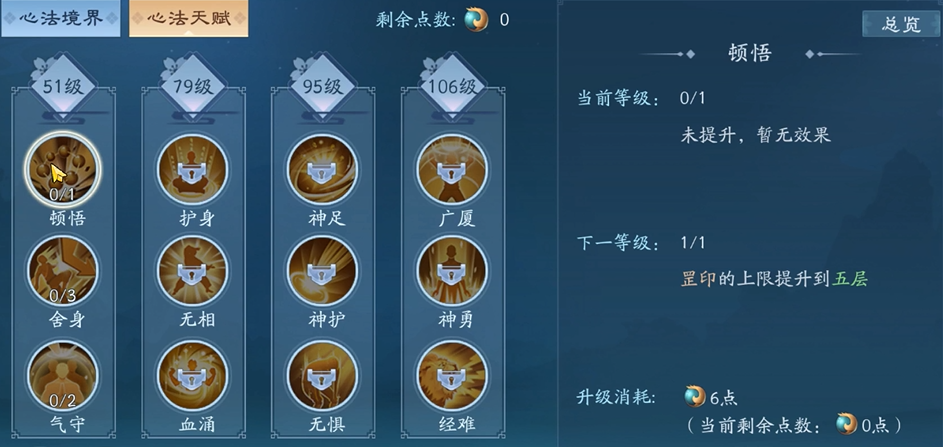 65级后会解锁心法系统,这是另一个重要成长线。心法境界能提升角色属性,消耗正气丸参悟境界,正气丸通过冥想试炼和影位奖励获得。心法天赋还能点亮技能树,天赋分为两套体系,非战斗状态下可以自由切换。天赋点数通过参悟境界获得,建议优先点满常用流派的技能,比如输出职业主点伤害加成,治疗职业侧重辅助效果。