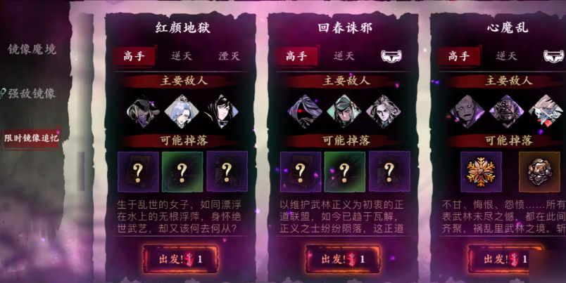除了无尽副本,还可以去里武林的三钥匙湮灭模式碰碰运气,不过这个模式有一定难度,需要咱们有一定的装备基础。深层墨镜也是一个选择,但挑战难度较高,适合后期装备成型的玩家去刷。如果运气好,在正道陨落的湮灭模式里也能掉落,但这个副本只在特定时间开放,记得留意游戏内的活动时间安排。