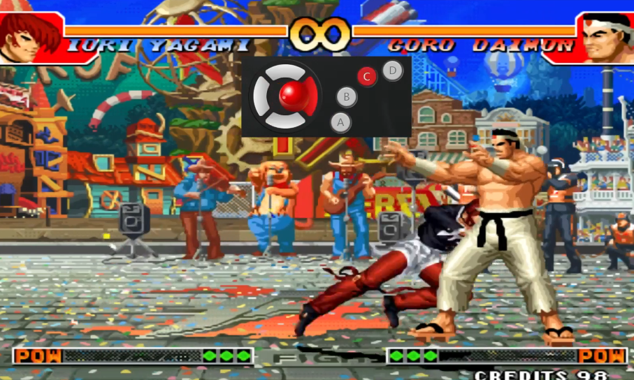 键盘玩家需特别注意指令顺序的独立性。先快速输入两次前(66)启动跑动,随后输入后(4)并迅速转为斜下(1),最后接前(6)和重拳(C)。此方法能减少串招概率,若失误则仅出普通重拳而非败招。摇杆玩家则需注重摇杆回中的时机,避免残留指令干扰。跑抓成功时,八神会以滑步姿态突进并触发投技判定。