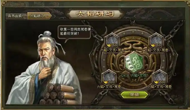 蓝色位置放防御和全兵种克制的兵书,红色位置选攻击和强攻属性,绿色位置则优先血量和强防。兵书碎片可以通过日常活动、副本挑战或者商店兑换获取,合成高级兵书后效果会质变。六韬兵书是比较实用的选择,但合成需要一定耐心,建议先集中资源搞一套主力阵容的兵书。