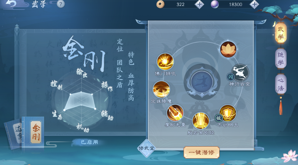 它分为达摩和金刚两大流派,名字听起来就很有安全感。达摩更偏向于攻守兼备,有一定的输出和突进控制能力,金刚则更纯粹,是团队的核心坦克,嘲讽、减伤、霸体样样精通,在副本里是不可或缺的存在。玩无相的核心是理解它的佛法和佛印机制,放技能就能积攒佛法,攒满了能叠加佛印层数,层数越高,你减伤和增伤的效果就越好。所以玩无相不是无脑丢技能,而是有节奏地维持自己的佛印,让自己始终处于一个很硬的状态。