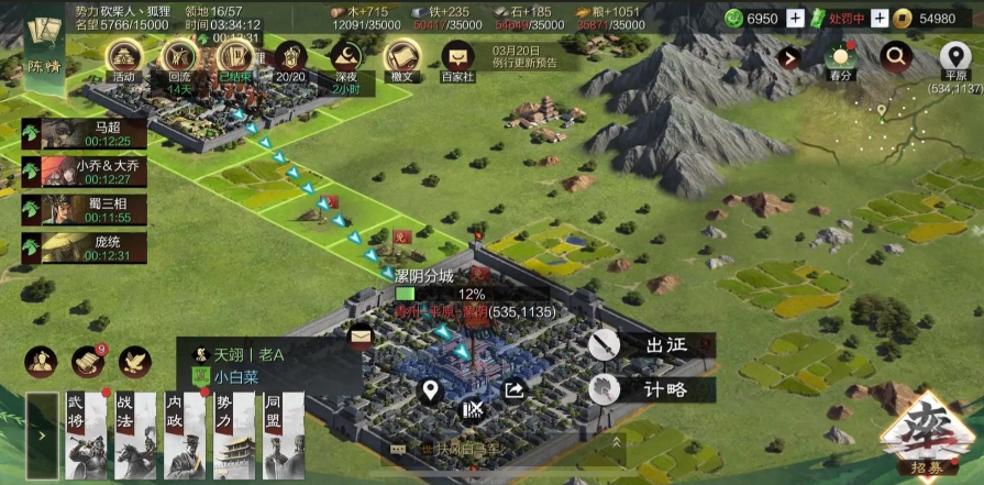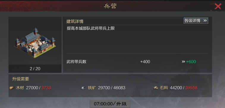 让分城征兵更有效率,你得在几个地方多花点心思。建造分城的位置就很有讲究,一个好位置能让后续发展事半功倍,有人建议第一座分城可以建在你所在州的中心区域,这样无论往哪个方向调兵距离都不会太远,方便支援。分城内部的建筑升级也要有优先级,既然是冲着征兵去的,那么兵营、校场、点将台这些直接提升带兵量和征兵速度的军事设施,应该优先考虑升级。尤其是点将台,升满级后能给同一阵营的武将缩短征兵时间,这个加成效果非常实用。分城的资源建筑比如农田、伐木场也不能完全不管,毕竟征兵要消耗大量的粮草、木材和铁矿,保证分城有稳定的资源产出,才能支撑起持续的征兵活动。
