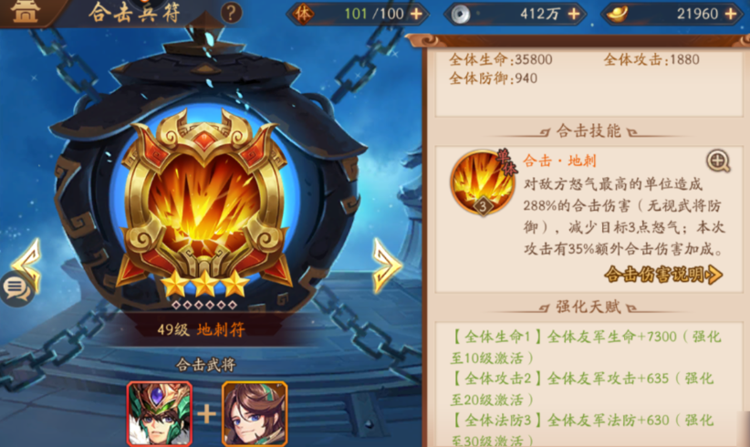 除了给单个武将搭配,还得考虑兵符扔出去的先后顺序,这在打架时特别重要。通常来讲,控制类的兵符像地刺符能减敌人怒气,适合最先放出去,打乱对方节奏。接着再放增益类的兵符,给自家队伍加上攻击或防御的BUFF。最后才轮到输出类的兵符,比如狂熊符,在队友把敌人血量压下去之后用来收尾。这个顺序不是死的,你得根据对面是啥阵容灵活调整,比如遇到爆发高的队伍,可能得多考虑先手控制或者给自己加盾加闪避。