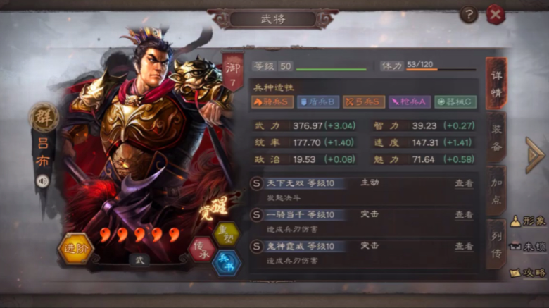 战法的选择直接决定了队伍的战斗风格。吕布自身通常携带一骑当千和鬼神霆威这类高伤害突击战法,最大化其决斗后的输出。为了进一步提升爆发和生存,队伍可以搭配三势阵战法,它能显著增加吕布自带主动战法的发动率,让天下无双更加频繁地触发,同时还能为受损的副将提供减伤,为兵力最高的副将提供增伤,优化了全队的攻防节奏。另一个关键战法是兵种战法虎豹骑或西凉铁骑,前者能提升全队武力并增加突击战法发动率,完美契合吕布;后者则提供高额会心几率,追求极致的暴击伤害。通过这样组合,队伍的战法链围绕提升吕布的出手机会和单次伤害质量来构建。