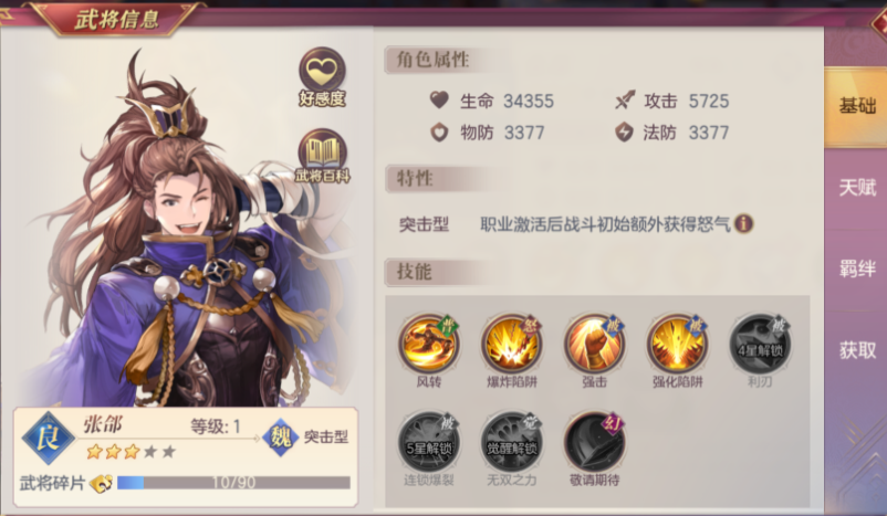 张辽是一位备受瞩目的神将品级武将,以其强大的单体爆发和独特的生存机制著称。他属于魏国阵营,基础职业为攻击型,可以进一步转职为强攻手或突击手,这为他适应不同阵容需求提供了灵活性。张辽的核心魅力在于其高额的物理伤害输出能力,尤其是针对敌方单体时,往往能打出决定战局的一击。对于新玩家而言,无论是通过首充获取还是后续招募,张辽都是一个能显著提升前期推图和战斗体验的强力选择,其高品级带来的优秀基础属性也让他在养成上具有很高的价值。