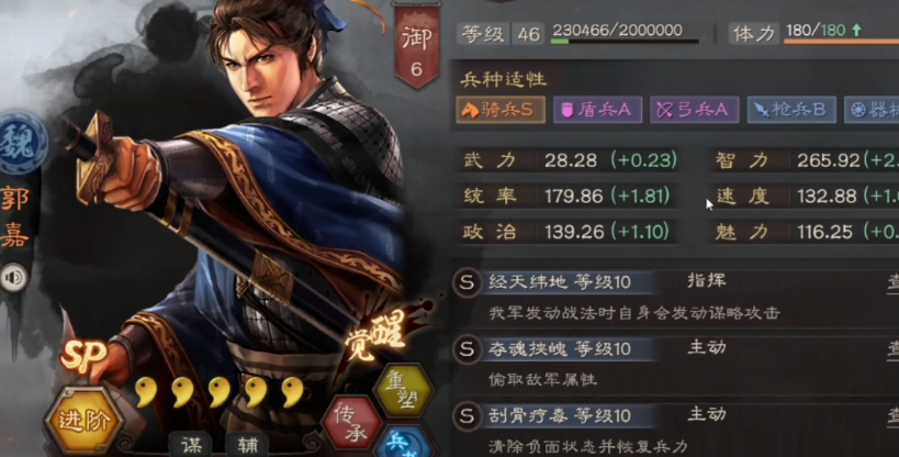 让于禁打出理想效果,首先得解决战法发动率的问题。由于持军毅重本身发动率偏低,直接携带白眉这类提升主动战法发动率的战法是一个很直接有效的选择。这能显著提高于禁的出手稳定性,让他叠加武力和打出群攻的回合数更多。解决了发动问题后,接下来的重点就是输出强化。于禁获得武力加成后,本身就是一个高武力炮台,因此携带高伤害的物理主动战法能让他如虎添翼。像所向披靡、破阵摧坚、轻勇飞燕、落凤等都是非常适配的选择,这些战法要么伤害范围广,要么附带减防或控制效果,能充分利用于禁的武力优势,造成毁灭性打击。