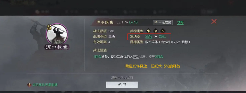 首先在加点方面,由于郝昭天生的速度很慢,这会影响他出手的先后顺序,所以很多情况下需要把一部分甚至全部的自由属性点加到速度上,让他能更快地行动,无论是打控制还是解控都更及时。技能选择上,如果走控制流,那么顶级的选择就是像浑水摸鱼、妖术这样的强力群体控制战法,他稳定的发动能牢牢掐住敌人的喉咙。如果走辅助流,那么全军突击、安抚军心这类能为队友解除负面状态的战法就和他非常契合,相当于一个移动的净化大师。还有一些玩法会让他带先驱突击,利用连击效果,再搭配像疾击其后这样的追击战法来补充伤害,最近也有配合新战法先声夺人的思路,利用连击和分兵机制打输出。