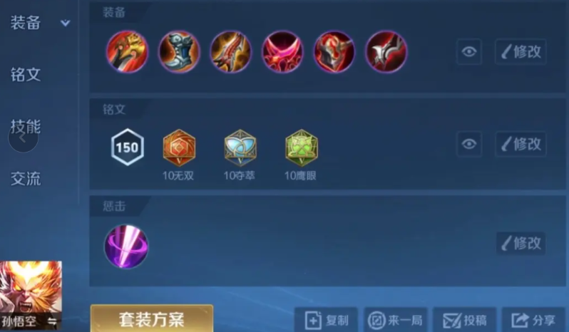 到了出装的中后期,选择泣血之刃来提供高额的物理吸血,这大大增强了孙悟空的续航能力和缠斗资本,让他打完一套后能通过野怪或兵线快速回血,持续作战。而破军这件装备则是极致输出的代表,它的被动对生命值低于一半的敌人造成额外伤害,让孙悟空斩杀残血的能力变得极其恐怖,但对于经济的需求也更高。不能光想着输出,生存同样重要,特别是作为需要进场切后的刺客。