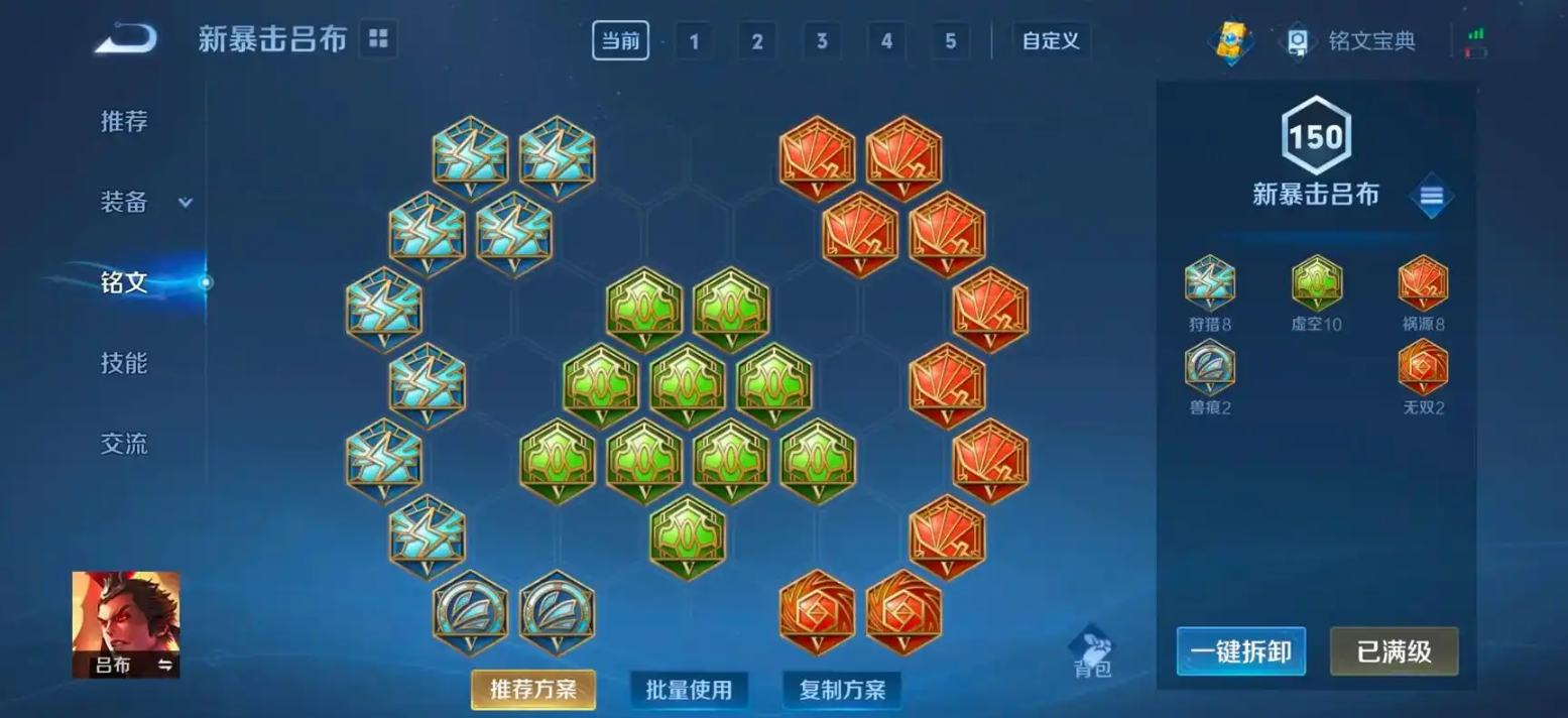 目前比较通用的搭配是蓝色隐匿、绿色虚空和红色红月。这套铭文能提供可观的攻速、移速、冷却缩减和生命值,可以说方方面面都照顾到了。攻速是为了让附魔后的普通攻击更加流畅,卡住攻速阈值;移速是为了弥补吕布腿短的先天劣势,支援跑图都舒服点;冷却缩减让你能更频繁地使用技能刷盾和附魔;而生命值则是实实在前期对资本钱。如果你想追求更极致的暴击快感,也可以考虑把红色铭文换成祸源,但可能会损失一些攻速,需要自己权衡手感。