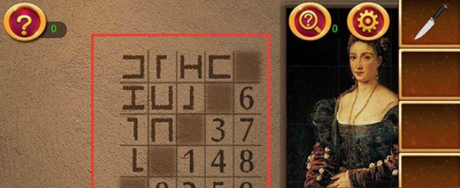 掏出我们之前得到的那把小刀。走到两段楼梯中间,那里挂着一幅看起来平平无奇的画。用小刀对着画面划一下,哇,画布后面竟然隐藏着一个带图形锁的密码盒子!这时候,就要用到我们拼好的左侧那幅图画了。左侧图画上有着特殊的图形排列规律,我们需要把刚才算出来的四位数字8239,按照图画上提示的对应规则,转换成特定的图形组合。仔细观察图画的规律,然后小心翼翼地调整密码盒上的图形旋钮,当所有图形都调到正确位置时,密码盒咔嗒一声就打开了,里面躺着一把闪亮的钥匙。
