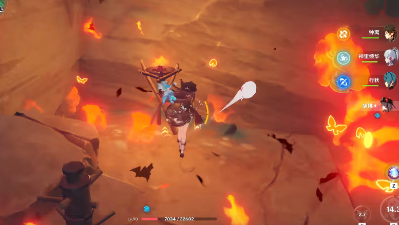 首先来到鸣神大社的东北方向,直接从悬崖边往下飞。注意观察半山腰的位置,会看到一个笼子挂在岩壁上。这时候需要操控角色沿着岩壁攀爬,找到笼子旁边的大树,站到树上就能发现洞窟入口了。这个方法适合身材娇小的角色,比如七七、可莉这些,因为洞口比较狭窄。如果没有这类角色,可以试试其他方法。
