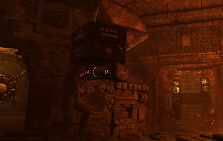 在解开这个谜题时,你也可以直接观察场景环境获取提示,而不必完全依赖游戏内找到的照片线索,有的攻略将游戏中获得的提示照片竖起来观看,可以辨别出左边最后一个损毁的数字是0,同时两边的墙壁上也直接刻有密码的答案图案,仔细观察墙壁上的雕刻可以对照操作。