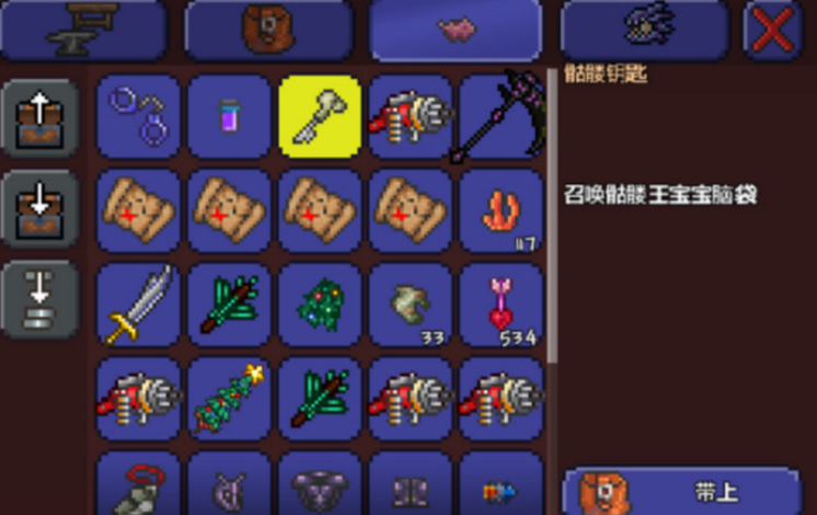 部分钥匙可以通过收集环境灵魂材料直接合成,例如夜光钥匙和暗影钥匙。制作夜光钥匙需要玩家在游戏进入困难模式后,前往地下腐化之地或猩红之地,通过击杀当地敌怪收集15个暗影之魂,随后在任意工作台处即可合成。暗影钥匙同样需要15个暗影之魂在工作台旁合成,它主要用于开启地狱中的暗影宝箱,暗影钥匙可以重复使用且本身也有概率从地牢中的金箱或狱石盒中直接获得。
