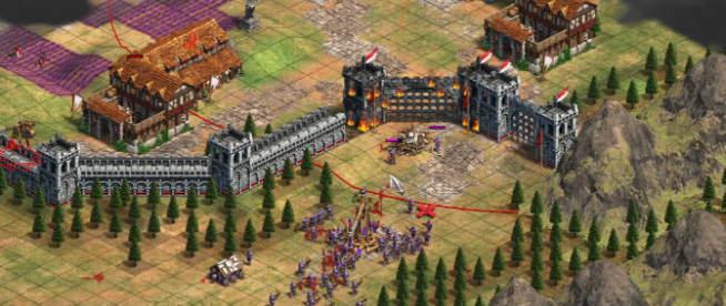 当敌人开始发动规模性进攻时,战局的防守重点便在于你的部队配比与地形利用,除了在家门口利用建筑学形成的防线消耗敌人,你还可以训练少量甲胄骑兵在侧翼游走,专门猎杀对方笨重的打包机与冲车。如果你的黄金储备充裕,招募一些僧侣辅助作战也是可取的策略,虽然他们对于条顿高级步兵的招降效果不佳且存在风险,但对于对付部分敌人的部队仍能产生效果。