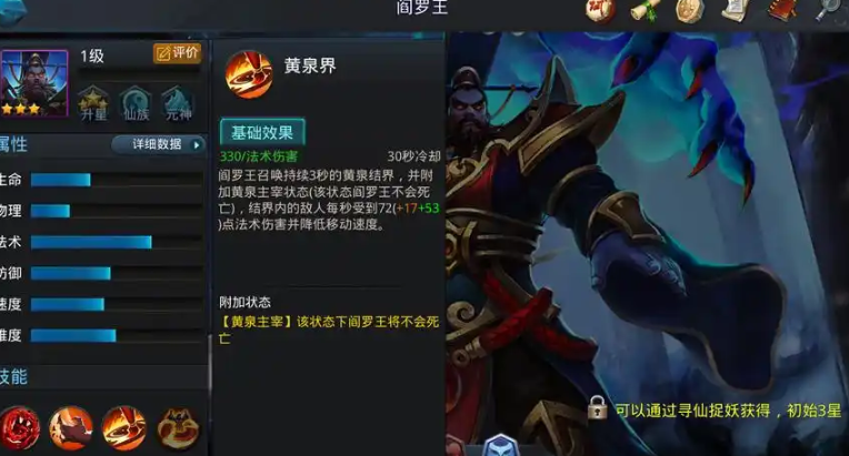 阎罗王的大招能提供短暂无敌并造成范围伤害和减速,但攻击范围有