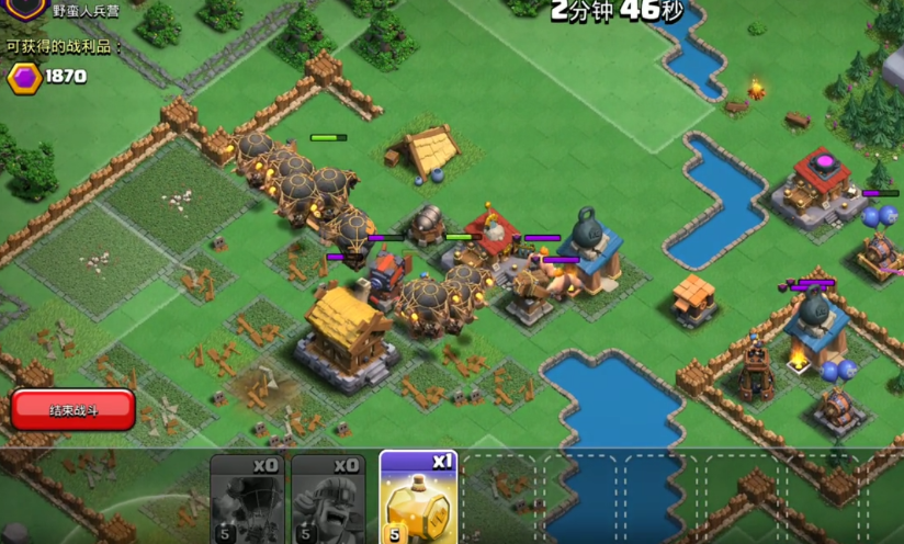 进入实战投放阶段,时机、顺序和协同是决定成败的关键。气球兵不应作为首发部队单独进场,通常需要其他单位为其创造输出环境。你可以先部署野蛮人之王、熔岩猎犬或少量其他兵种作为肉盾,吸引并承受第一波防御火力,尤其是防空火箭的锁定。你再根据事先规划的路线,在相应的防御建筑侧后方分批投放气球兵。投放时可以运用多点引导技巧,例如先在某处放下少量气球攻击一个建筑,待其开始移动后,再在预定路线上投放主力气球群,这样可以更精确地引导整体部队的走向。务必让气球兵集中火力攻击同一个片区,以形成局部优势,快速拆除防御链。