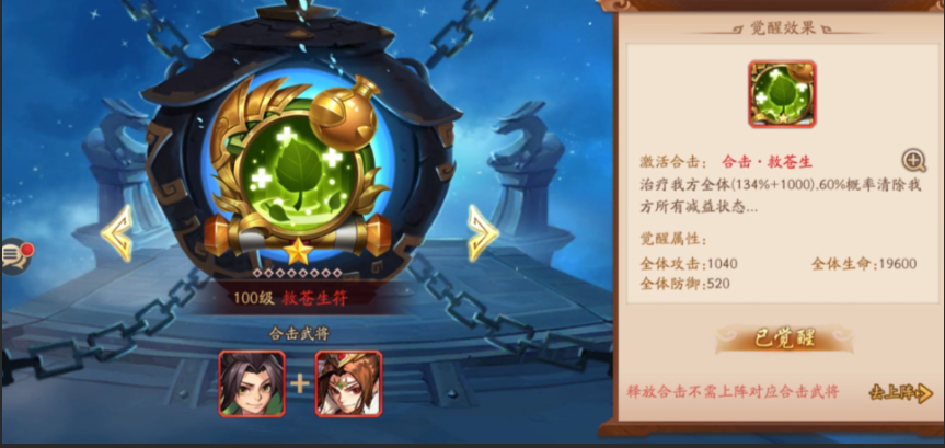 合击技能的触发需要特定缘分组合的武将同时上阵,在战斗中武将存活且怒气值攒满4格后即可手动释放。合击兵符需要通过日常副本、商店兑换或活动获取碎片进行合成与装备。兵符养成分为升星和强化,升星需要同名碎片以提升伤害和特效概率,强化则消耗通用材料直接增加全体武将属性。资源分配上应优先培养主力阵容的专属兵符,例如优先将寒冰裂符升至高星以最大化眩晕概率,并强化地刺符的控怒能力。