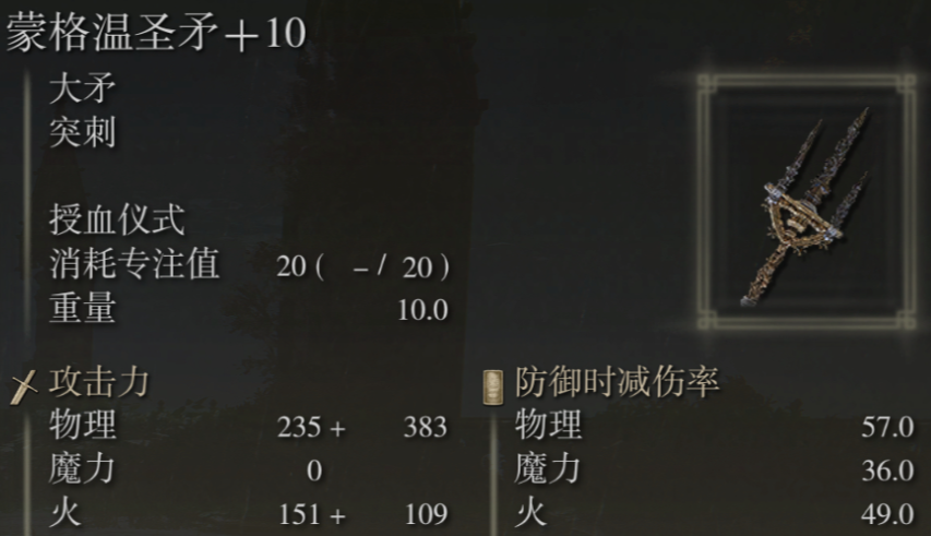 除了上述大剑类武器,一些带有特殊效果的武器也非常适合密使。蒙格温圣矛是另一个顶级选择。你也可以考虑山贼弯刀或艾琉诺拉双头剑,它们能提供更快的攻击速度。在装备这些武器的同时,别忘了搭配能够增强信仰攻击或提供生存能力的护符,比如增加祷告威力的护符。你的圣印记(指头圣印记)也应信仰属性的提升而更换为更高级的型号,以增强祷告的效果。