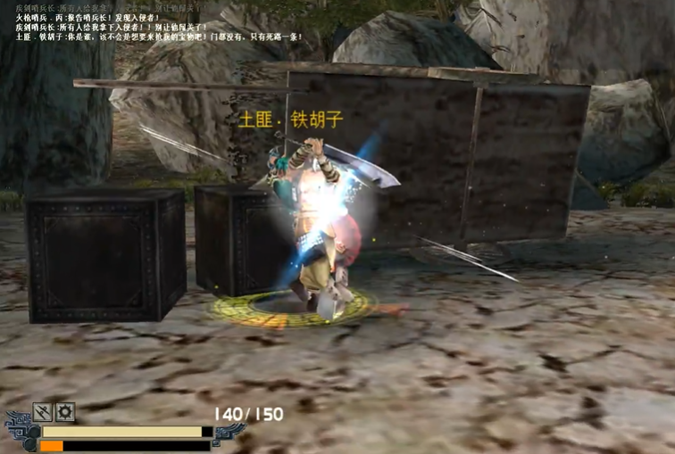 为了接近目标人物范璇,你需要获取入关的信物,而每月前来兜售珍宝的古董商身上正带有此物。关卡中夺取镖物是推进任务的关键。在操作上,拾取镖物后,你需要使用武器(例如大刀)打破拦路的木栅栏,具体的招式可以是连续按下A键、D键配合左键发动大招来快速破坏障碍。