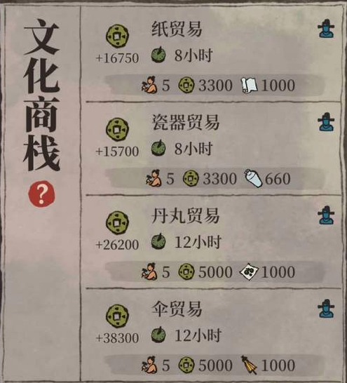 商栈的基础玩法始于建造,你必须将其放置在杭州府北面的大运河沿岸,并且建筑本体的右上方三格必须造在运河河面之上,以满足船只装卸货物的条件。建造好普通的商栈后,真正的玩法在于将其升级为拥有特殊加成和专属贸易类型的进阶商栈。升级需要获取并阅读游戏内道具经商之道,其中记载了具体的合成公式。