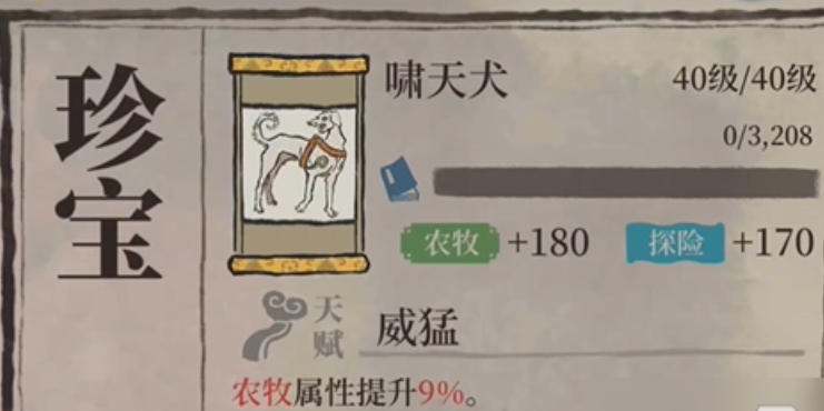 哮天犬作为一件强化农牧属性的珍宝,其获取难度相对较低,并且比较容易进行升级,这使它成为了许多农牧角色在前期和中期非常实用且首选的装备。在没有获取到特定角色的专属珍宝,或者专属珍宝难以升级的情况下,哮天犬提供了一个稳定且可观的属性提升途径,能够有效增强你城镇的农牧生产能力。