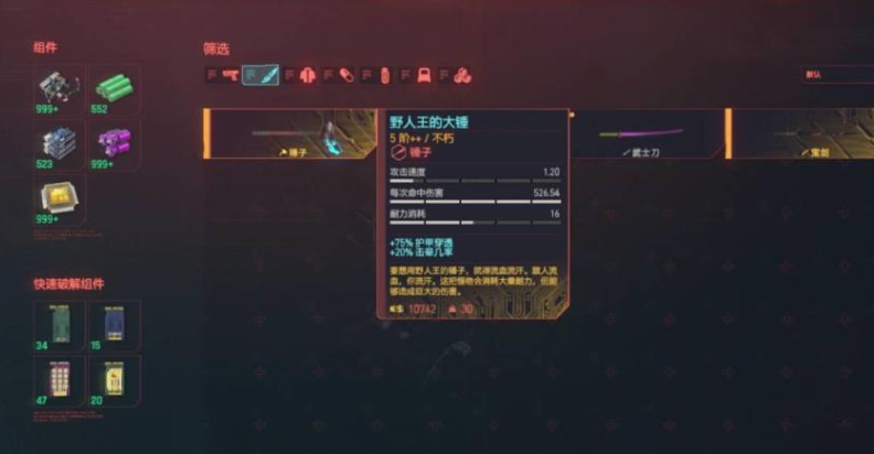 钝器作为一类重要的近战武器,以其独特的控制效果和高伤害潜力,为玩家提供了别具一格的战斗体验。游戏中的钝器种类丰富,主要可分为单手棍棒、双手棍棒以及锤子等类型,它们不仅是暴力的工具,其粗糙而戏谑的设计也折射出夜之城底层的生态缩影。这些武器大多附带击晕、电击、中毒或流血等异常状态几率,能够在造成伤害的同时有效干扰敌人,是构建控制型或高爆发近战流派的核心。