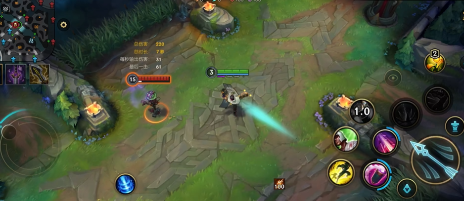 操作细节上,位移装备的瞄准需结合智能施法设置。默认摇杆模式会根据移动方向自动判定位移朝向,而固定位置模式则需手动调整角度。建议在训练模式中熟悉不同装备的施法范围和判定机制,例如原型腰带的锥形伤害区域或海克斯磁爪的友军锁定逻辑。同时需注意部分装备会受墙体阻挡,实战中需预判地形障碍。