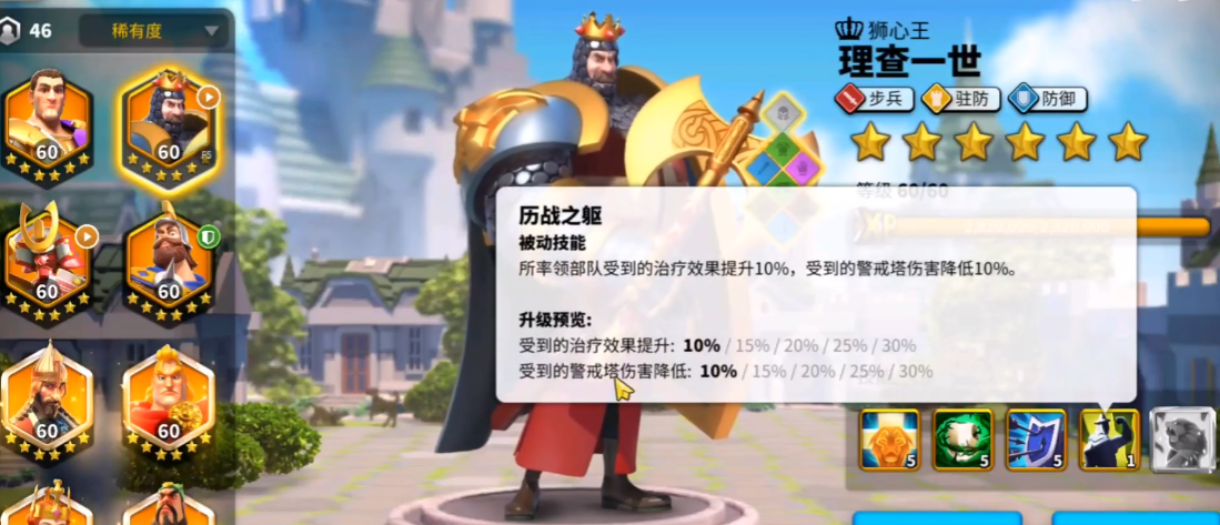 理查一世在K2阶段仍具备一定战略价值,但需注意其定位更偏向野战承伤而非驻防。该武将的被动治疗与防御加成适合持久战,但面对高爆发集结时易被针对。骑兵武将萨拉丁的觉醒技能提供额外行军速度与伤害减免,在追击和迂回战术中表现优异,搭配铁木真的快速技能循环可形成持续压制力。骑兵单位对操作要求较高,需避免陷入步兵包围圈。