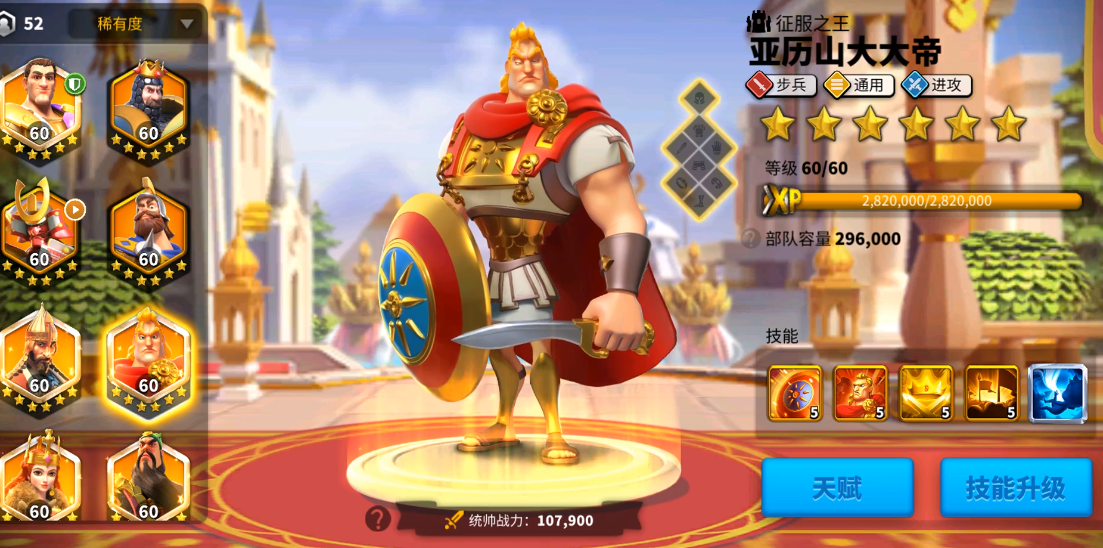 万国觉醒K2阶段的核心英雄选择需兼顾野战、集结、驻防等多场景需求,其中亚历山大、查理马特、李成桂、埃塞尔弗莱德等武将表现尤为突出。步兵系推荐亚历山大与查理马特组合,兼具高防御与群体增益;骑兵系优先考虑萨拉丁与铁木真,擅长爆发输出与机动压制;弓兵阵营则以李成桂为核心,其圆形范围技能在混战中能高效清场。辅助类武将如埃塞尔弗莱德凭借技能减益效果成为平民玩家的战略首选,远征商店可稳定获取其雕像。