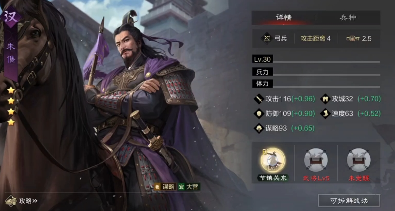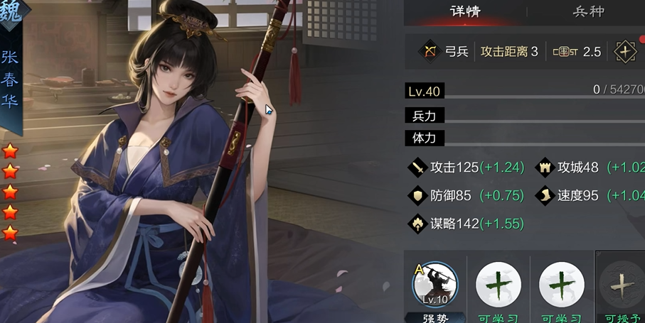 在兵种选择上,建议把王异转成长弓兵,这样她的攻击距离能达到5格,可以直接威胁到敌方大营。朱儁也适合长弓兵,能更好地发挥他的群体战法效果。张春华可以考虑转成死士,提升一些生存能力。宝物方面优先给王异配备增加策略伤害的,比如环首刀或者玄铁剑,让她输出更高。