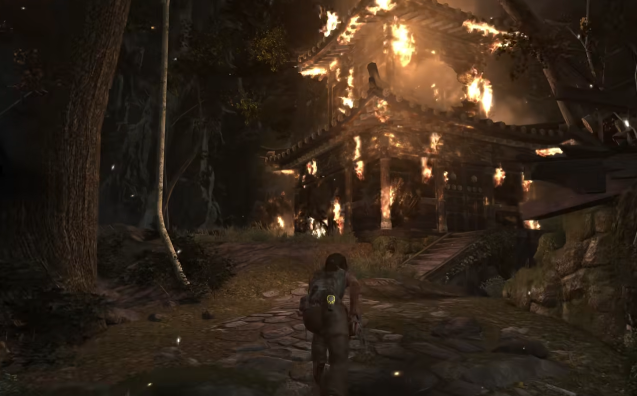 成功击败Boss后要找到逃生路线。爬上阁楼顶层时会遇到钟摆机关,先用弓箭射断支撑柱,再操作通风窗控制气流方向让钟摆摆动。最后用绳索箭把钟摆拉下来砸穿地面,跟着倒塌的结构滑下去就能到达栈道。一路冲刺跳上吊桥,打穿栅栏后跳入水中,这场惊险的寺院冒险就圆满结束了。