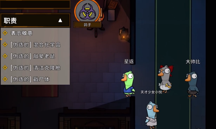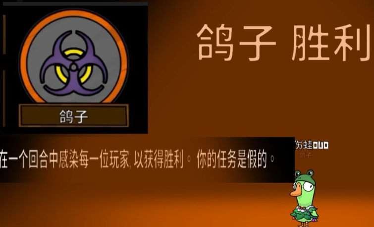 和平鸽的技能使用起来很简单,只要靠近其他玩家就能自动感染他们。感染过程是无声无息的,被感染的玩家不会收到任何提示,甚至连你自己也看不到谁已经被感染了。你得尽量多和人接触,尤其是游戏后期人数变少时,更容易一次性感染剩余玩家。记得避免单独行动,因为鸭子可能会盯上你,而好人阵营也可能因为你的可疑行为投票淘汰你。