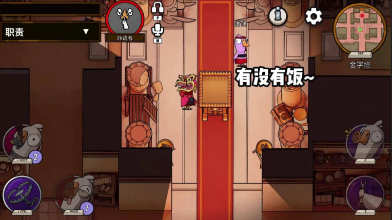 静语者的技能冷却时间为10秒,首轮会议后初始冷却延长至20秒,与普通鸭子的刀人冷却时间相同。技能施放需贴近目标玩家并按下左Shift键,被静音者会显示静音图标提示。需注意,静语者无法对自己使用技能,且技能会占用Shift键功能,导致无法进入藏匿点或通风管道。该技能的实际价值体现在信息压制,例如在击杀目击者后立即静音,可阻断其会议阶段的指证。