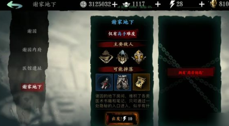 除主线任务外,谢园钥匙还可通过支线任务医者私心解锁。选择告知真相—帮凶之举的对话选项后,不仅能获得钥匙,还可解锁传说装备图纸。部分玩家反馈钥匙可能通过击败特定BOSS概率掉落,但需组队应对高难度战斗。日常任务与活动限时奖励也是稳定获取途径,但需关注游戏内公告。