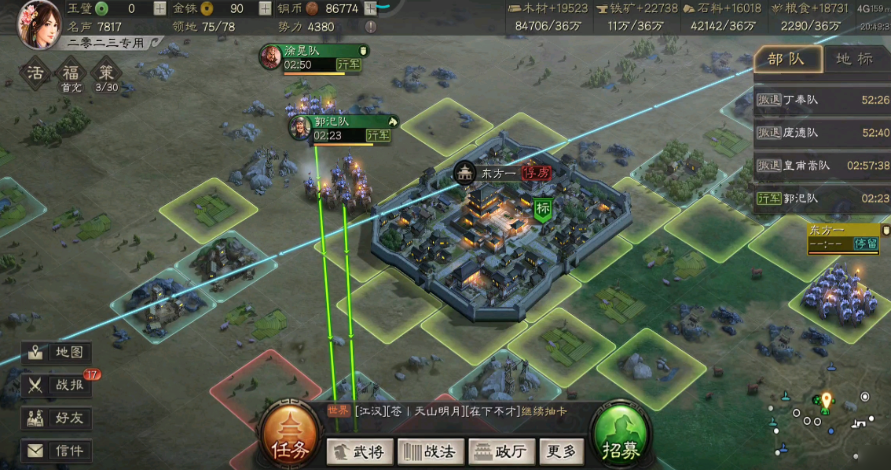 攻打其他玩家,首先得确保自己的主力队伍已经成型,兵力充足,战法搭配合理。开荒阶段结束后,建议把主力队伍练到30级兵力至少达到1.2万以上再去挑战别人,否则容易翻车。记得优先侦查对方的守军阵容,利用兵种克制来降低战损,比如骑兵克盾兵,盾兵克弓兵,弓兵克枪兵,枪兵又克骑兵,这个循环一定要记牢。