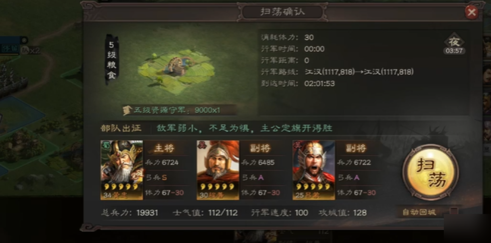 前期需重点屯田石料,因其消耗量大且影响主城升级进度。土地等级越高,屯田收益越高,因此应优先占领并屯田3级及以上资源地。策书每小时恢复1个,每日可购买3次,建议用于高等级土地屯田。合理分配建设队列,初期无需急于开启额外队列,待第五章后建设时间延长再逐步扩充。武将等级提升依赖扫荡,5级地适合20-30级武将,6级地适合30-40级,需根据兵力与等级动态调整目标。